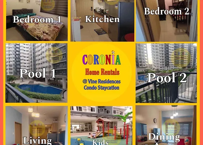 アンパロ自然公園から歩いて25分以内に位置するベッドルーム1室のVine Residences Condo Staycation In Sm Novaliches Quezon City マニラ市では、ビジネスにもレジャーにもWi-Fiを利用することができます。 プライベートなプールを利用でき、よりリラックスした滞在を楽しむことができます。